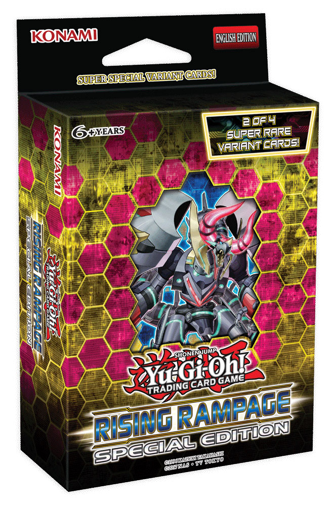 Launching September 13, Duelists can get their hands on the newest core booster set of the year, Rising Rampage Special Edition, with each box including 2 of 4 Super Rare cards making their TCG debut, as well as 3 Rising Rampage booster packs. MSRP: $9.99 Per Box.