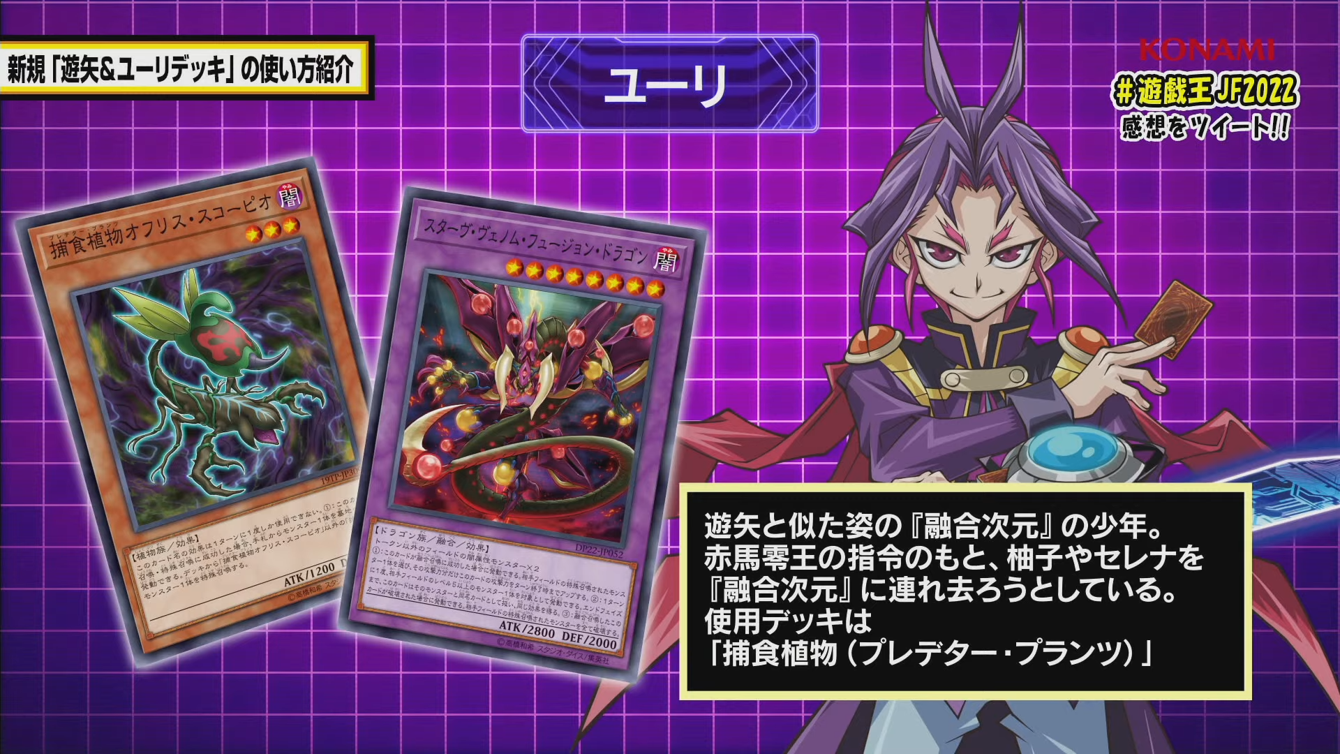 A boy from the “Fusion Dimension” who shares Yuya’s face. Under orders from Akaba Leo, he chases Serena and Yuzu to bring them to the Fusion Diemsnion. His Deck is “Predaplants”.