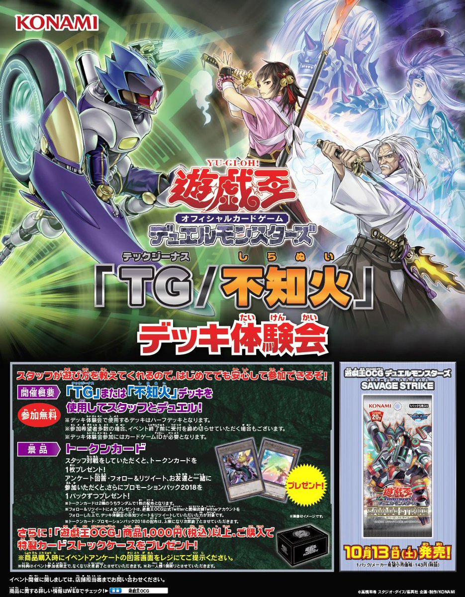 From October 4th to October 12th, Konami will be running Deck Experience events throughout Japan where you can play half Decks of T.G. and Shiranui.