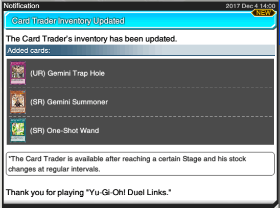 [Duel Links] Card Trader Update (December 4th)