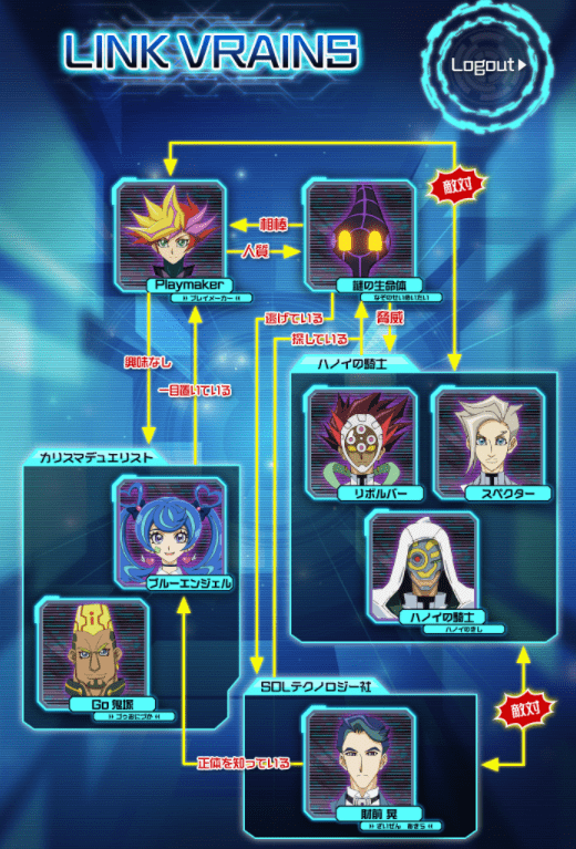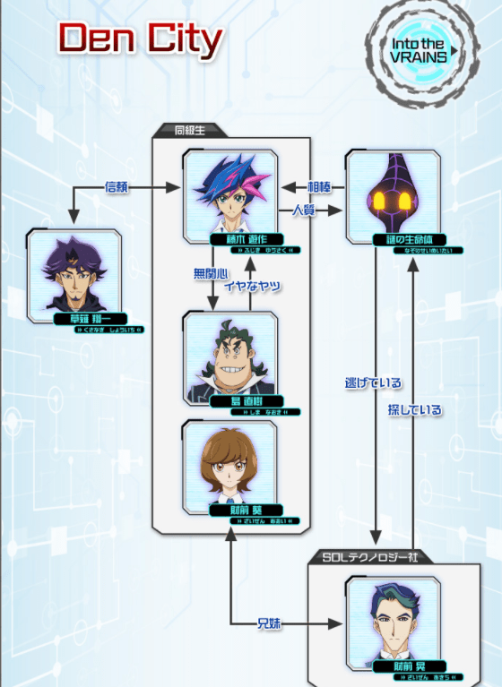 The official website has updated the gist of the current character relationship web for VRAINS for those who want a brief primer. Warning, spoilers and unmentioned character names.