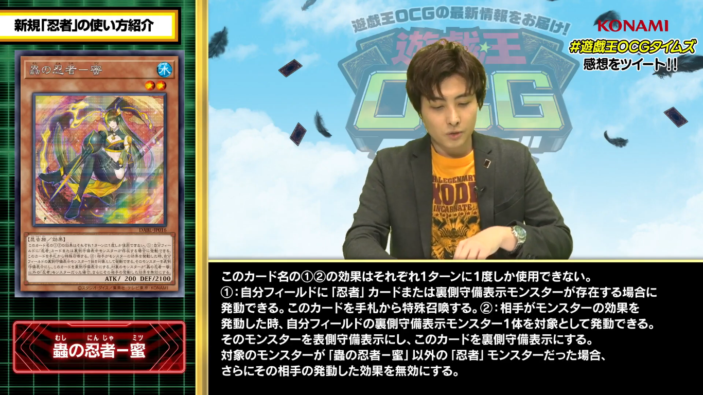 (2) When your opponent activates a monster effect (Quick Effect): You can target 1 of your face-down Defense Position monsters; change it to face-up Defense Position, and if you do, change this card to face-down Defense Position, then, if the targeted monster was a “Ninja” monster, except “Insect Ninja Mitsu”, negate that opponent’s activated effect.