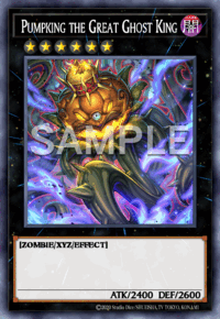 While you control “Call of the Haunted”, your opponent cannot target Zombie monsters you control with monster effects. You can only use each of the following effects of “Pumpking the Great Ghost King” once per turn. If this card is Special Summoned: You can add 1 “Call of the Haunted” or 1 card that mentions it from your Deck to your hand. You can detach 1 material from this card, then target up to 2 cards on the field; return them to the hand.