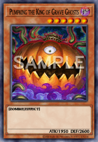 You can reveal this card in your hand; Set 1 “Call of the Haunted” from your Deck or GY, and if you do, discard 1 card. That Set card can be activated this turn. If this card is Special Summoned: You can Special Summon 1 Level 6 Zombie monster from your Deck, except with 1950 ATK, also you cannot Special Summon from the hand or GY for the rest of this turn, except Zombie monsters. You can only use each effect of “Pumpking the King of Grave Ghosts” once per turn.