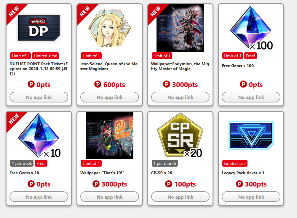 The two major game apps for Yu-Gi-Oh! connect to the Duelist Point Program.