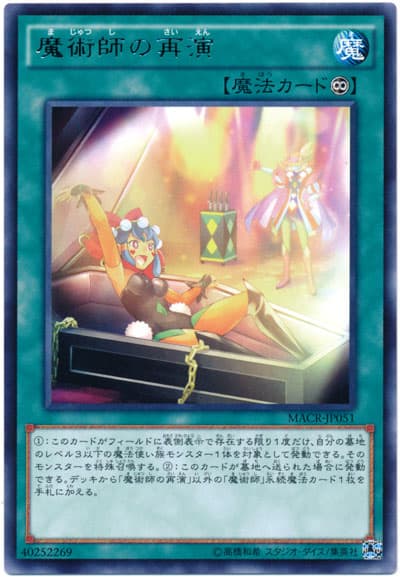 (2) During either player’s turn: You can target 1 Continuous Spell Card you control; return it to the hand, then you can activate 1 “Magician” Continuous Spell Card from your hand.