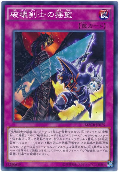 (1) Send 2 cards from your Deck to the Graveyard (1 “Buster Blader” monster and 1 “Destruction Sword” card, except “Cradle of the Destruction Swordsman”); Special Summon 1 “Buster Dragon” from your Extra Deck or Graveyard, but destroy it during the next turn’s End Phase.