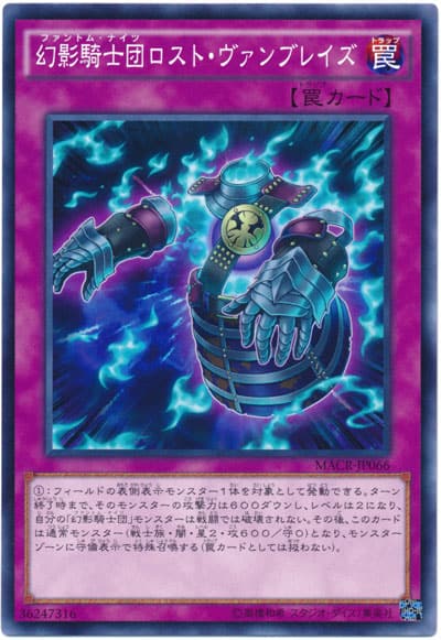 (1) Target 1 face-up monster; that monster loses 600 ATK, also its Level becomes 2, also “The Phantom Knights” monsters you control cannot be destroyed by battle. (These changes last until the end of this turn.) Also, after that, if you do any of those, Special Summon this card as a Normal Monster in Defense Position (Warrior-Type/DARK/Level 2/ATK 600/DEF 0). (It is not treated as a Trap Card.)